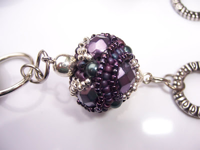 Gefädelt habe ich ein paar Ohrringe nach einer freien Anleitung von Gwen Fisher hier. In die Kette habe ich die Anleitungen Bling Ring (wurde schon gepostet) von try-to-be-better sowie die Perle Ebénè von hier verarbeitet.